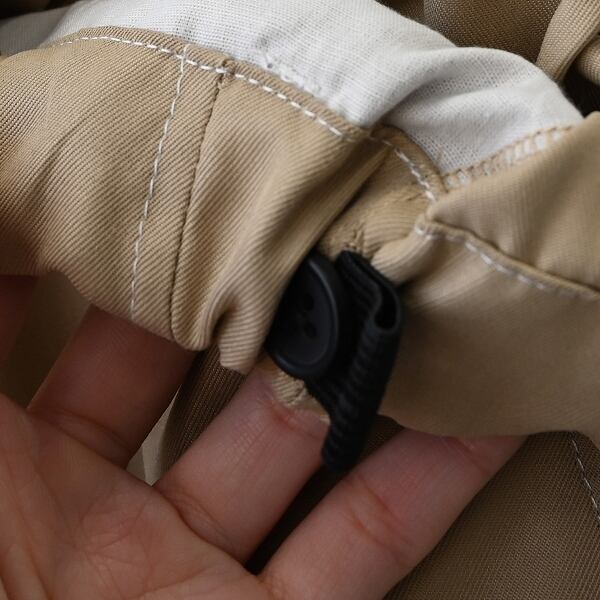 ウエスト全周ゴム仕様・アジャスター付きで調節可能