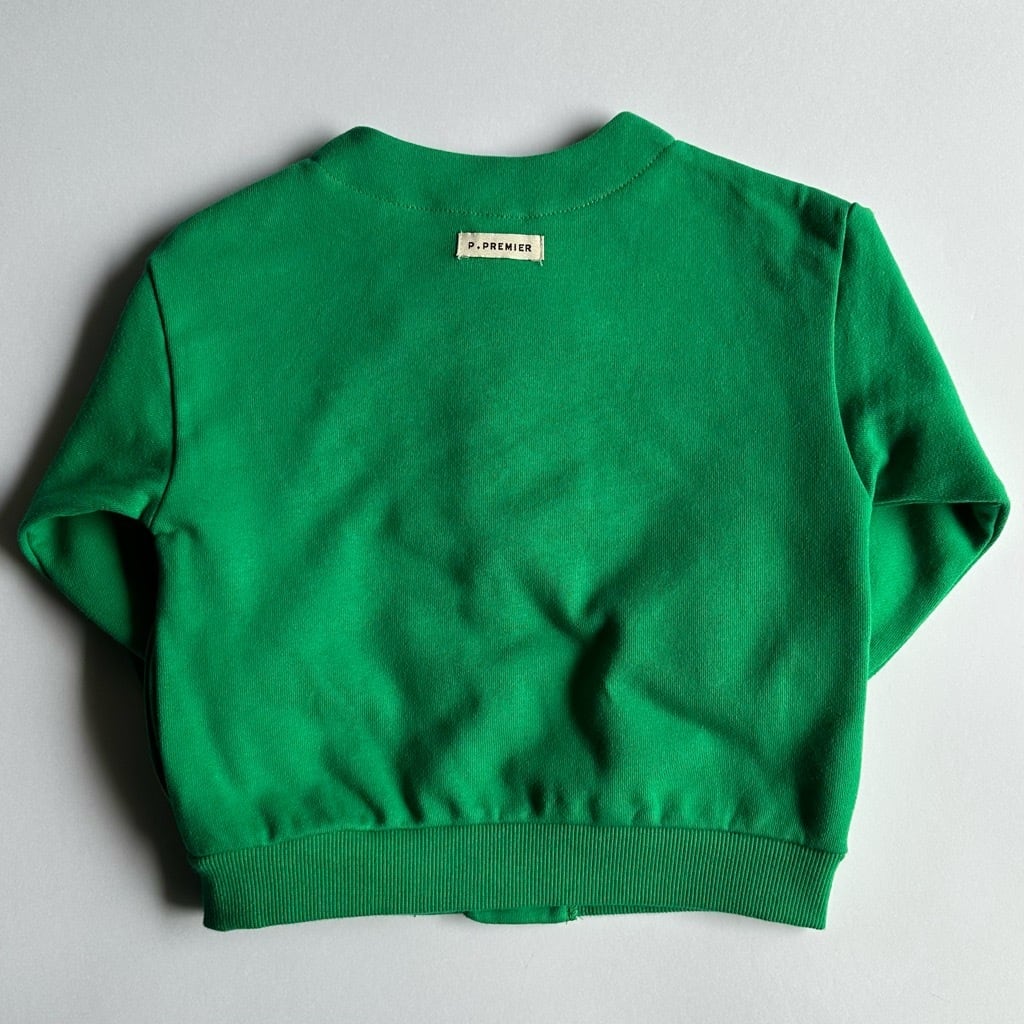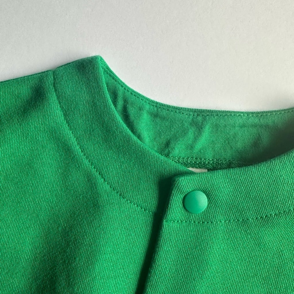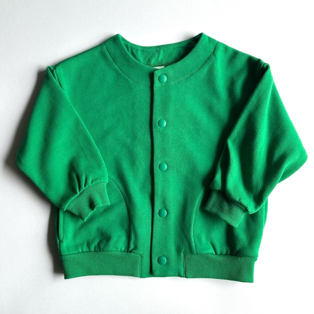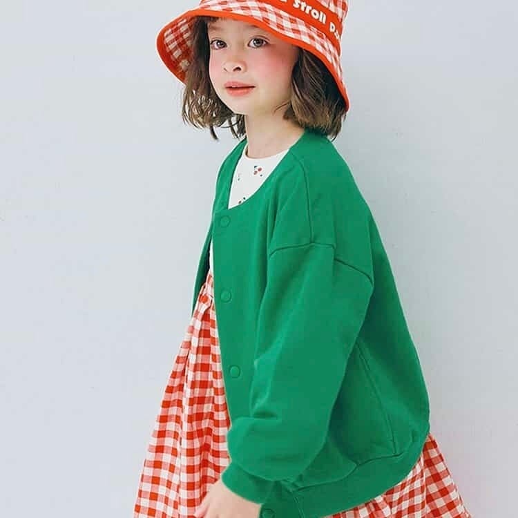 発色のよいグリーンがとびきり可愛いカーディガン。