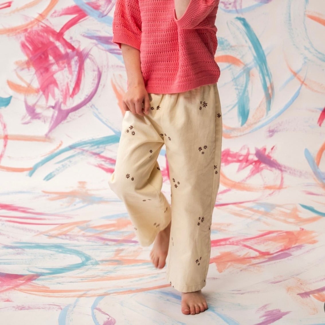 Grown Organic Embroidery Denim Pants【2-6Y】Milk