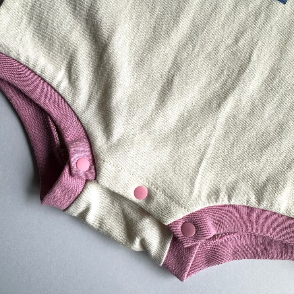 リンガーネックがレトロで可愛いロンパース。