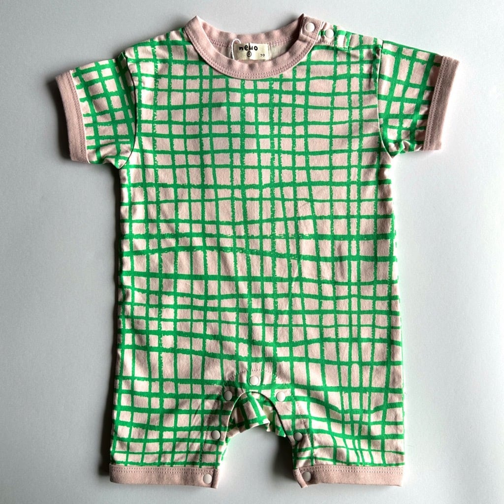 NeWo×Goma S/S Rompers Check【70cm】Green